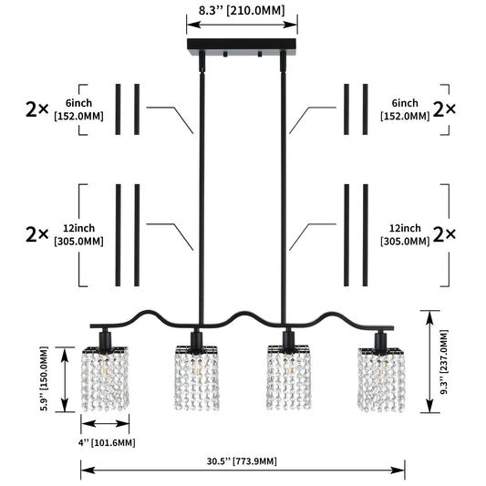 Crystal Chandelier 4-Light Linear Raindrop Pendant Ceiling Light