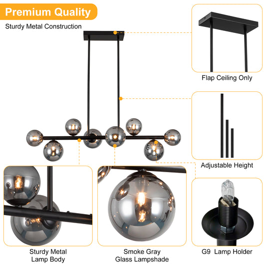 Modern 8-Light Globe Sputnik Chandelier Mid Century Black Sputnik Chandelier